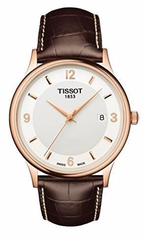 Model: T914.410.76.017.00 - CASE = [Material:18kt Rose Gold], [Case Diameter:40], [Case Thickness:5.65mm], [Water Resistant:30 Meters - 100 Feet], [Crystal:Scratch Resistant Sapphire],; DIAL = [Color:White Arabic Index],; MOVEMENT = [Type:Quartz],; BAND = [Clasp:Deployment], [Type:Brown Leather], (Usually ships in 1 to 2 weeks.)