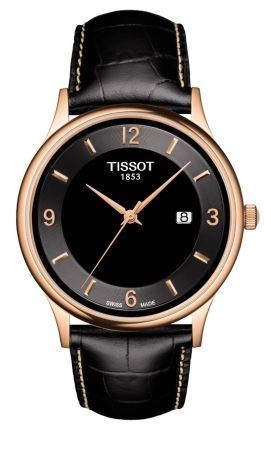 Model: T914.410.46.057.00 - CASE = [Material:18kt Rose Gold], [Case Diameter:40], [Case Thickness:5.65mm], [Case Back:Solid], [Water Resistant:30 Meters - 100 Feet], [Crystal:Scratch Resistant Sapphire], DIAL = [Color:Black Arabic Index], MOVEMENT = [Type:Quartz], BAND = [Clasp:Deployment], [Type:Black Leather], (Usually ships in 1 to 2 weeks.)