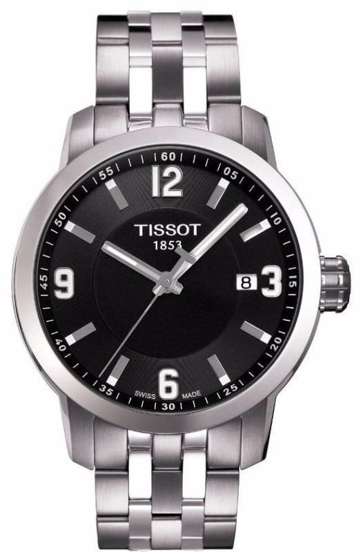 Model: T055.410.11.057.00 - CASE = [Material:Stainless Steel], [Case Diameter:39.9], [Case Thickness:10.55mm], [Case Back:Solid], [Water Resistant:200 Meters / 660 Feet], [Crystal:Scratch Resistant Sapphire Crystal],; DIAL = [Color:Black],; MOVEMENT = [Type:Battery Powered Quartz], [Crown:Screw Down],; BAND = [Clasp:Push Button Foldover Clasp], [Type:Stainless Steel], (Usually ships in 1 to 2 business days.)