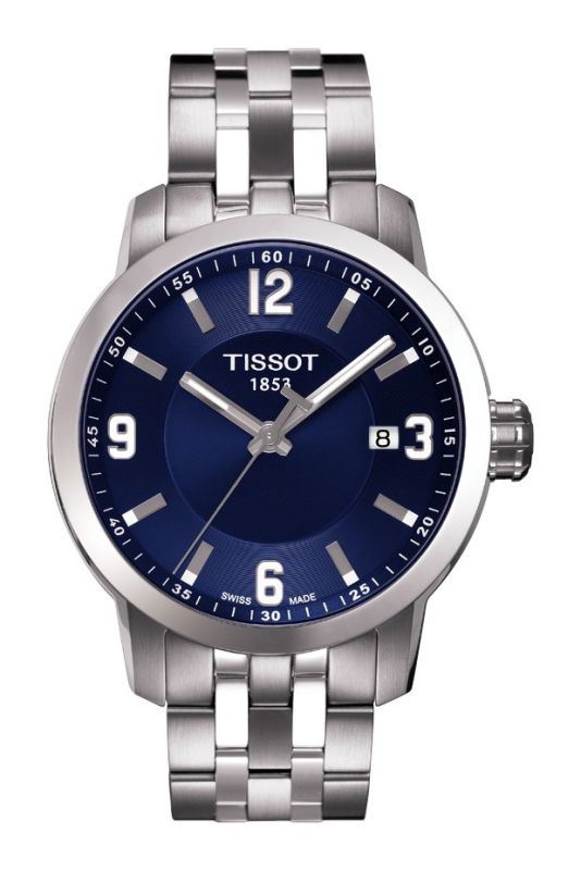 Model: T055.410.11.047.00 - CASE = [Material:Stainless Steel], [Case Diameter:39.9], [Case Thickness:10.55mm], [Case Back:Solid], [Water Resistant:200 Meters / 660 Feet], [Crystal:Scratch Resistant Sapphire Crystal], DIAL = [Color:Blue], MOVEMENT = [Type:Battery Powered Quartz], [Crown:Screw Down], BAND = [Clasp:Push Button Foldover Clasp], [Type:Stainless Steel], (Usually ships in 1 to 2 business days.)