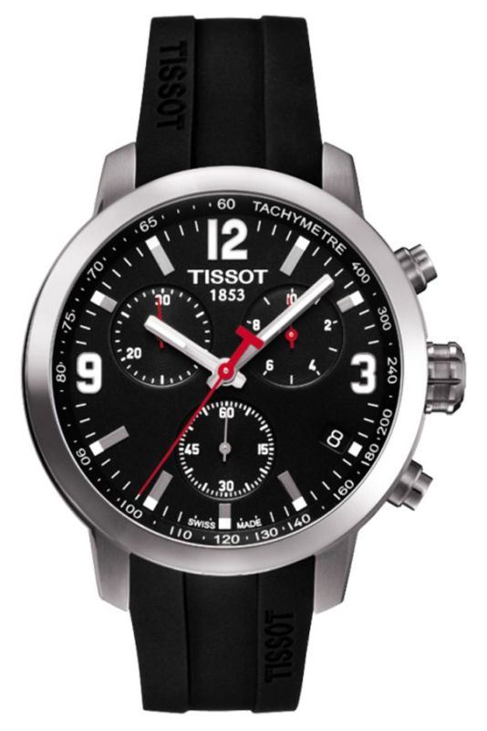 Model: T055.417.17.057.00 - CASE = [Material:Polished Stainless Steel], [Case Diameter:42], [Case Thickness:13mm], [Case Back:Solid], [Water Resistant:200 Meters - 660 Feet], [Crystal:Scratch Resistant Sapphire], DIAL = [Color:Black], MOVEMENT = [Type:Battery Powered Quartz], BAND = [Clasp:Tang Buckle], [Type:Black Rubber], (Usually ships in 4 to 8 weeks.)