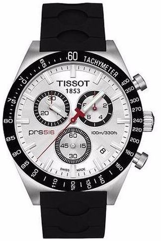 Model: T044.417.27.031.00 - CASE = [Material:Brushed Stainless Steel], [Case Diameter:42], [Water Resistant:100 Meters - 330 Feet], [Crystal:Scratch Resistant Sapphire],; DIAL = [Color:Silver],; MOVEMENT = [Type:Battery Powered Quartz],; BAND = [Clasp:Deployment Buckle], [Type:Black Rubber], (Usually ships in 1 to 2 business days.)