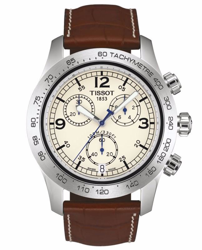 Model: T36.1.316.72 - CASE = [Material:Brushed and Polished Stainless Steel], [Case Diameter:43], [Bezel:Fixed with Tachymetre Scale], [Case Back:Solid], [Water Resistant:100 Meters - 330 Feet], [Crystal:Scratch Resistant Sapphire],; DIAL = [Color:Ivory Chronograph],; MOVEMENT = [Type:Battery Powered Quartz],; BAND = [Clasp:Tang], [Type:Brown Crocodile Leather], (Usually ships in 1 to 2 business days.)