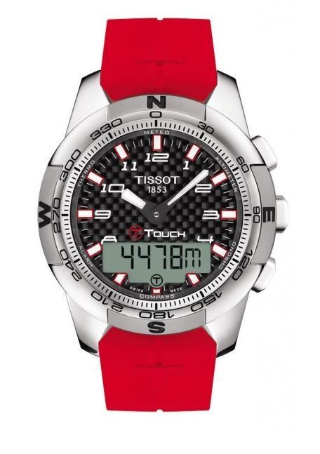 Model: T047.420.47.207.02 - CASE = [Material:Titanium with PVD Coating], [Case Diameter:43], [Case Thickness:14.6mm], [Water Resistant:100 Meters - 330 Feet], [Crystal:Scratch Resistant Sapphire], DIAL = [Color:Black Carbon with Arabic + Index Numerals], MOVEMENT = [Type:Quartz], BAND = [Clasp:Folding], [Type:Red Rubber], (Usually ships in 1 to 2 weeks.)