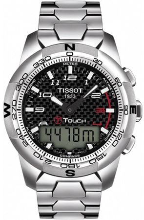Model: T047.420.44.207.00 - CASE = [Material:Titanium], [Case Diameter:44], [Water Resistant:100 Meters - 330 Feet], [Crystal:Scratch Resistant Sapphire],; DIAL = [Color:Black Digital & Analog Touch Screen],; MOVEMENT = [Type:Battery Powered Quartz],; BAND = [Clasp:Deployment Buckle], [Type:Brushed with Polished Titanium &], (In Stock - Ready to ship.)