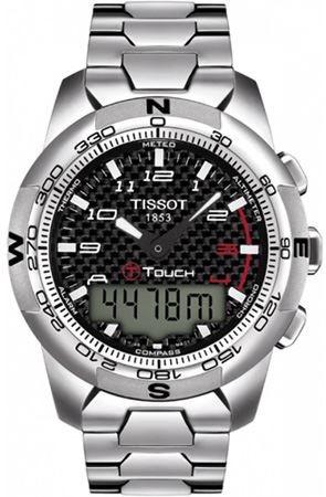 Model: T047.420.44.207.00 - CASE = [Material:Titanium], [Case Diameter:44], [Water Resistant:100 Meters - 330 Feet], [Crystal:Scratch Resistant Sapphire], DIAL = [Color:Black Digital & Analog Touch Screen], MOVEMENT = [Type:Battery Powered Quartz], BAND = [Clasp:Deployment Buckle], [Type:Brushed with Polished Titanium &], (In Stock - Ready to ship.)