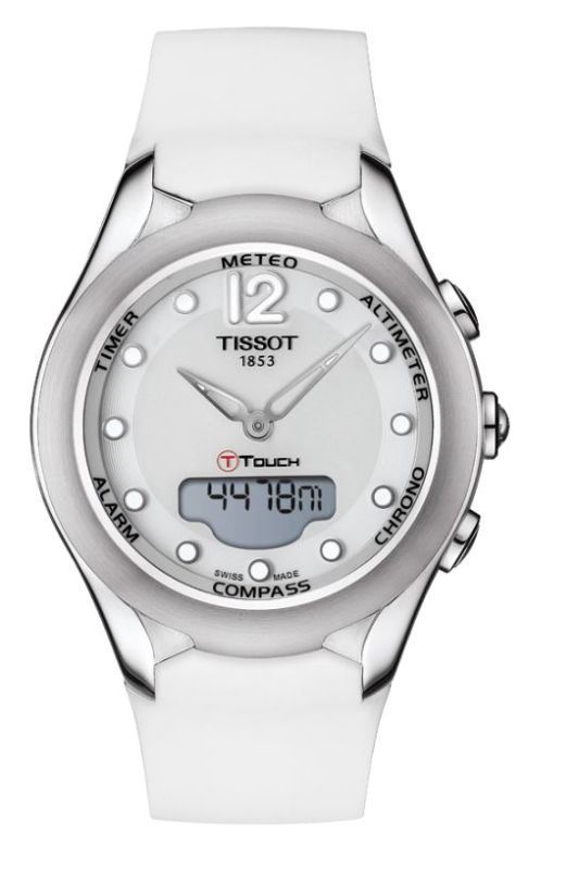 Model: T075.220.17.017.00 - CASE = [Material:Stainless Steel], [Case Diameter:38], [Case Thickness:12.14mm], [Bezel:Fixed], [Case Back:Solid], [Water Resistant:100 Meters - 330 Feet], [Crystal:Scratch Resistant Sapphire], DIAL = [Color:White with Arabic + Index Numerals], MOVEMENT = [Type:Solar Quartz], BAND = [Clasp:Folding], [Type:White Rubber], (Usually ships in 1 to 2 weeks.)