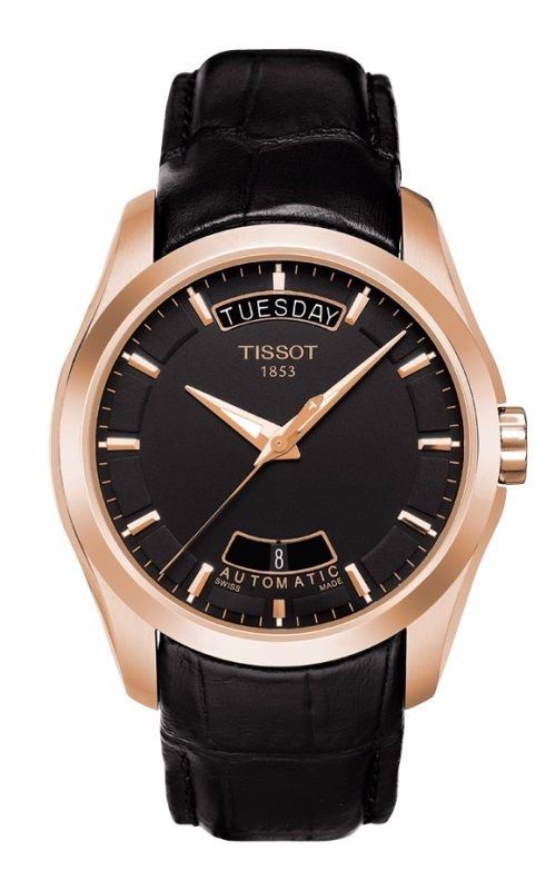 Model: T035.407.36.051.00 - CASE = [Material:Stainless Steel with Gold Tone], [Case Diameter:39], [Case Thickness:10.8mm], [Case Back:See-thru Sapphire Crystal], [Water Resistant:100 Meters/ 330 Feet], [Crystal:Scratch Resistant Sapphire Crystal],; DIAL = [Color:Black],; MOVEMENT = [Type:Automatic Self Winding],; BAND = [Clasp:Double Folding Deployment], [Type:Black Crocodile Leather], (Usually ships in 1 to 2 business days.)