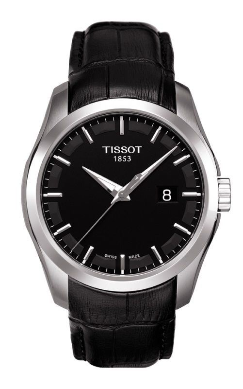 Model: T035.410.16.051.00 - CASE = [Material:Stainless Steel], [Case Diameter:41], [Case Thickness:10.8mm], [Case Back:Solid], [Water Resistant:100 Meters/ 330 Feet], [Crystal:Scratch Resistant Sapphire Crystal], DIAL = [Color:Black], MOVEMENT = [Type:Battery Powered Quartz], BAND = [Clasp:Double Folding Deployment], [Type:Black Crocodile Leather], (Usually ships in 1 to 2 weeks.)