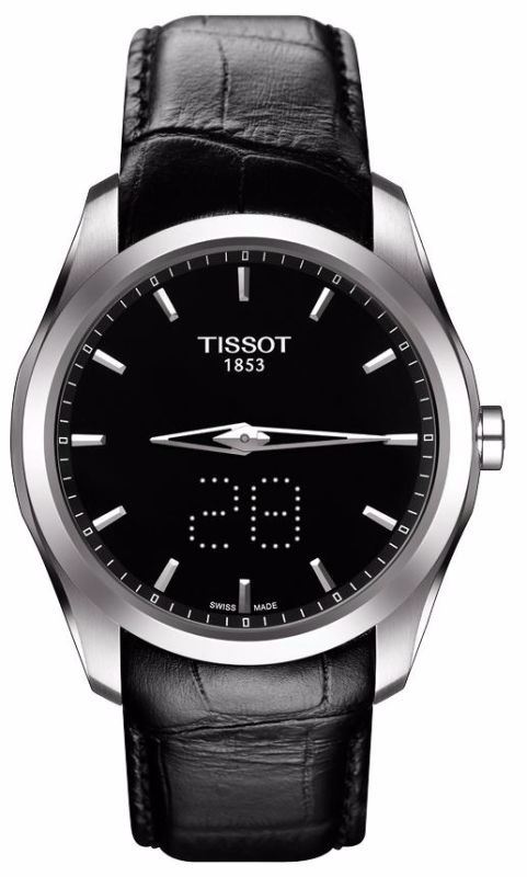 Model: T035.446.16.051.00 - CASE = [Material:Stainless Steel], [Case Diameter:39], [Case Thickness:10.82mm], [Bezel:Fixed], [Case Back:Solid], [Water Resistant:100 Meters - 330 Feet], [Crystal:Scratch Resistant Sapphire],; DIAL = [Color:Black Index],; MOVEMENT = [Type:Quartz], [Crown:Push In],; BAND = [Clasp:Deployment], [Type:Black Leather], (Usually ships in 1 to 2 weeks.)