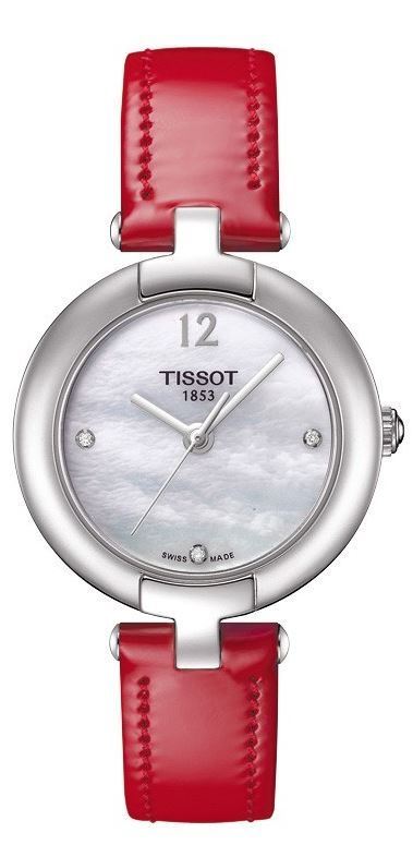Model: T084.210.16.116.00 - CASE = [Material:Stainless Steel], [Case Diameter:27.95], [Case Thickness:6.49mm], [Bezel:Fixed], [Case Back:Solid], [Water Resistant:30 Meters - 100 Feet], [Crystal:Scratch Resistant Sapphire], DIAL = [Color:Mother of Pearl with Diamond Numerals], MOVEMENT = [Type:Quartz], [Crown:Push In], BAND = [Clasp:Tang], [Type:Red Leather], (Usually ships in 1 to 2 weeks.)
