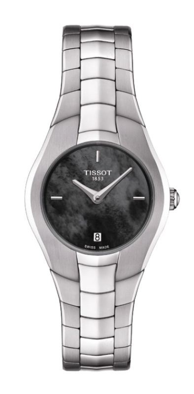 Model: T096.009.11.121.00 - CASE = [Material:Stainless Steel], [Case Diameter:25.9], [Case Thickness:6.25mm], [Bezel:Fixed], [Case Back:Solid], [Water Resistant:50 Meters - 165 Feet], [Crystal:Scratch Resistant Sapphire], DIAL = [Color:MOP Black with Index Numerals], MOVEMENT = [Type:Quartz], BAND = [Clasp:Deployment], [Type:Stainless Steel], (Usually ships in 1 to 2 weeks.)