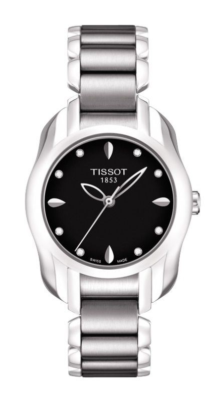 Model: T023.210.11.056.00 - CASE = [Material:Stainless Steel], [Case Diameter:26], [Case Thickness:7.95mm], [Case Back:Solid], [Water Resistant:30 Meters/100 Feet], [Crystal:Scratch Resistant Sapphire Crystal], DIAL = [Color:Black with Diamond Hour Markers], MOVEMENT = [Type:Battery Powered Quartz], BAND = [Clasp:Double Folding Deployment], [Type:Polished and Brushed Stainless Steel], (Usually ships in 1 to 2 weeks.)