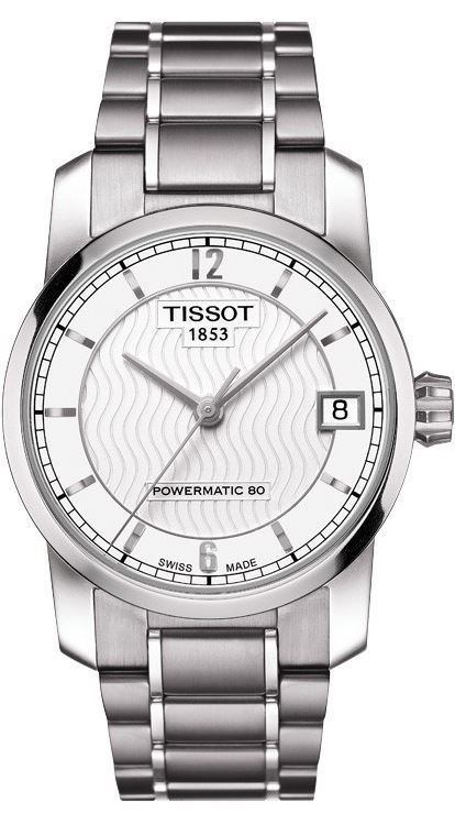 Model: T087.207.44.037.00 - CASE = [Material:Titanium], [Case Diameter:32], [Case Thickness:18mm], [Bezel:Fixed], [Case Back:Solid], [Water Resistant:50 Meters - 165 Feet], [Crystal:Scratch Resistant Sapphire], DIAL = [Color:Silver Arabic Index], MOVEMENT = [Type:Automatic], [Crown:Push In], BAND = [Clasp:Deployment], [Type:Titanium], (Usually ships in 1 to 2 weeks.)