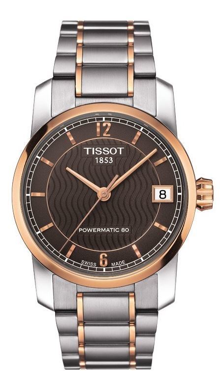 Model: T087.207.55.297.00 - CASE = [Material:Titanium], [Case Diameter:32], [Case Thickness:18mm], [Bezel:Fixed], [Case Back:Solid], [Water Resistant:50 Meters - 165 Feet], [Crystal:Scratch Resistant Sapphire], DIAL = [Color:Brown Arabic Index], MOVEMENT = [Type:Automatic], [Crown:Push In], BAND = [Clasp:Deployment], [Type:Titanium], (Usually ships in 1 to 2 weeks.)