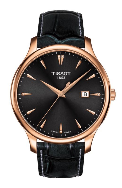 Model: T063.610.36.086.00 - CASE = [Material:Stainless Steel with Rose Gold PVD Coating], [Case Diameter:42], [Case Thickness:7.47mm], [Bezel:Fixed], [Case Back:Solid], [Water Resistant:30 Meters - 100 Feet], [Crystal:Scratch Resistant Sapphire], DIAL = [Color:Grey], MOVEMENT = [Type:Quartz], [Crown:Push In], BAND = [Clasp:Deployment], [Type:Grey Leather], (Usually ships in 1 to 2 weeks.)