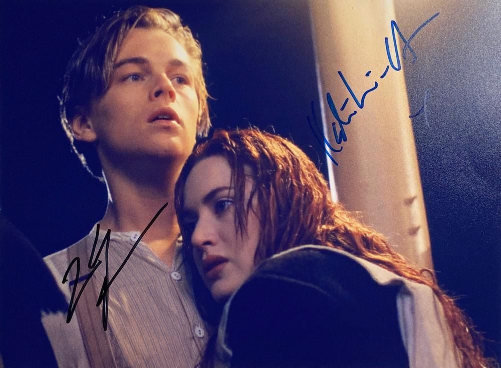 Titanic Leonardo DiCaprio and Kate Winslet facsimile signed movie photo. 8x10 inches. This item is a reprint of an original autograph
