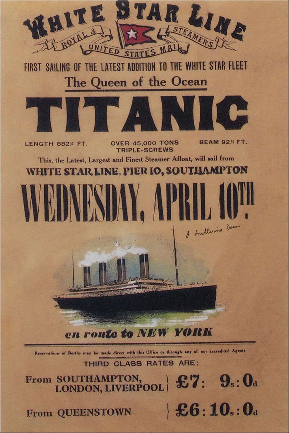 The youngest passenger on board the Titanic, she was its last remaining survivor until she passed away in May 2009. Color satin-finish 12 x 18 photo of a poster for the White Star Line’s Titanic, signed in black felt tip. In very fine condition.