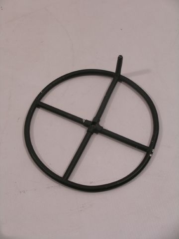 This is a miniature 'deck wheel' prop from the James Cameron 1997 blockbuster Titanic. The prop is a black plastic 'wheel' with a small handle, and was used for the miniature shots of the ship. (measures approx. 6" across)
