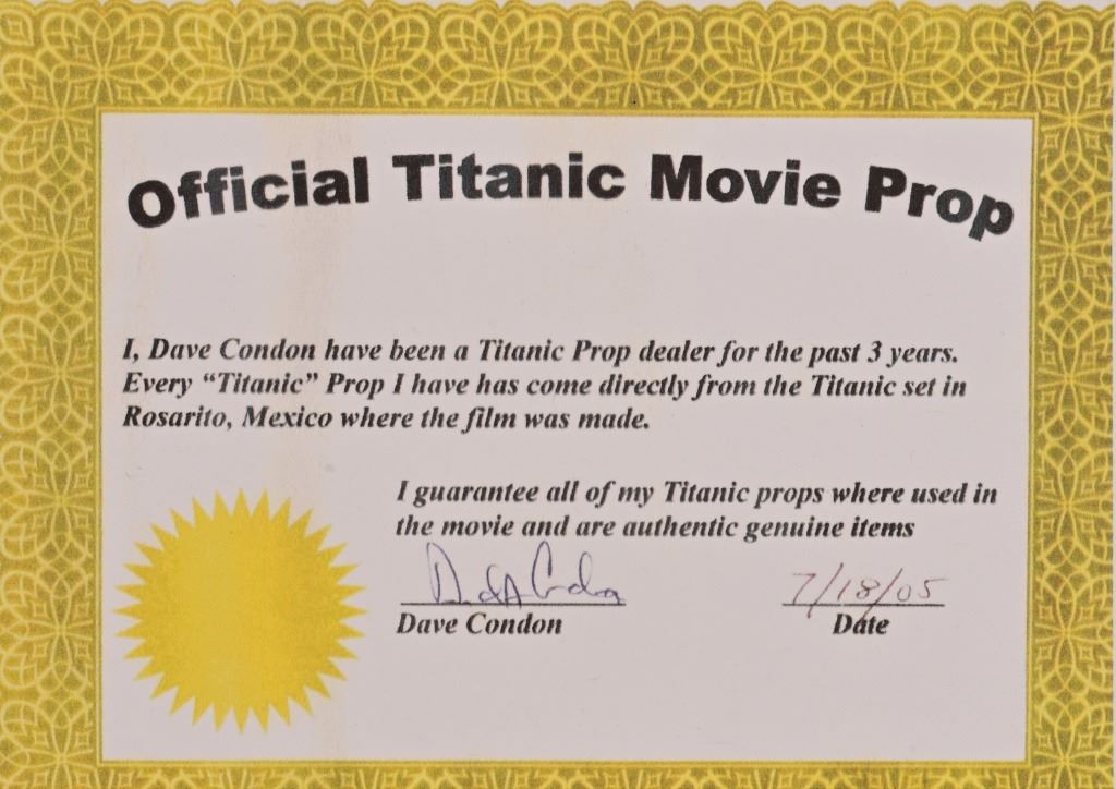 Titanic movie prop ship swatch. 2x2 inches. TR149