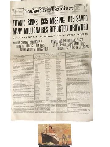Titanic (1997) - replica newspaper and postcard.