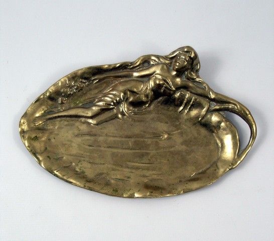 James Cameron's attention to every little accurate for his massive hit "Titanic" (1997) is a thing of legends. This is a metal platter with "lounging woman" that was used as set-dressing as part of the first class dining room set. (Approx. 12" long).