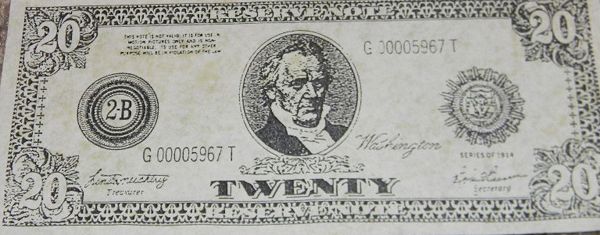$20.00 prop bill used in the production of the film. This item comes with a certificate of authenticity good for the life of the piece.
