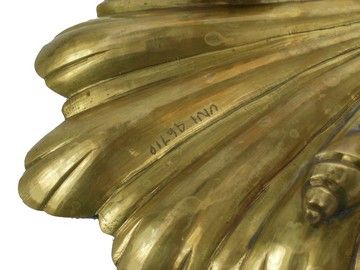 From "Titanic", one of the most successful movies of all time, this is a brass sea shell wall adornment used as a background prop in one of the ship's cabins. (approx. 7" x 7.5" x 2")