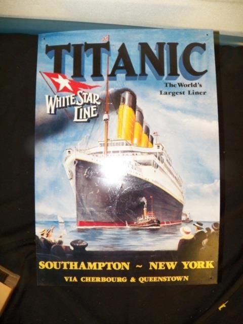 White Star Line The World's Largest Liner "Titanic" Sign measures approx. 11" x 16"