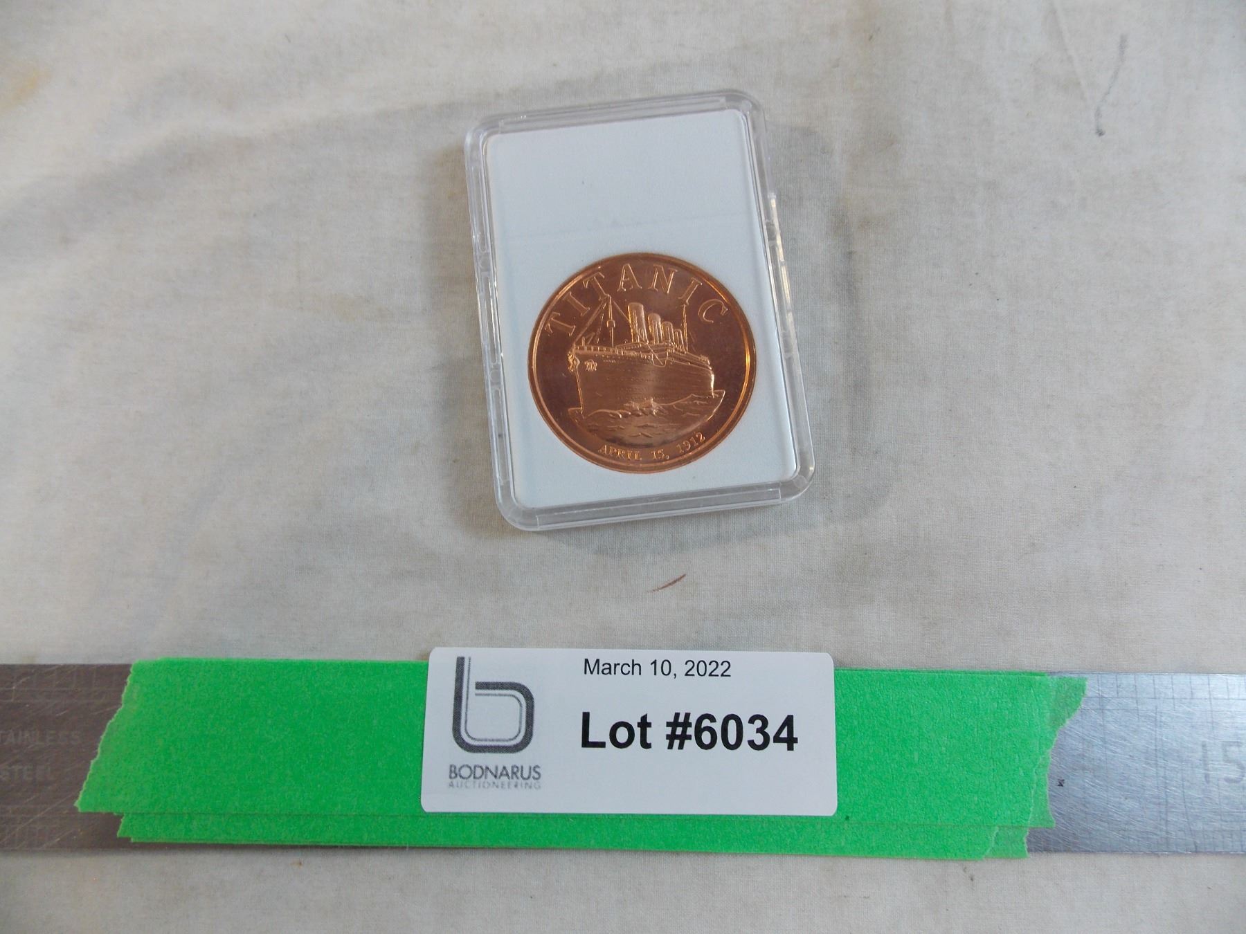 Titanic copper coin in case - 1oz - cannot guarantee authenticity
