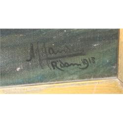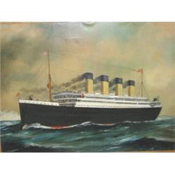 ‘Titanic’ oil on canvas painting by A.J. Jansen. Painting measures 38 ¾” x 30 ½” framed. Measures 30” x 22 ¼” unframed. Painting is signed in the lower right corner “A.J. Jansen-R-dam 1918”. Comes with a letter from the Maritiem Museum in Rotterdam, Netherlands giving information about the painter as well as three of his other works.