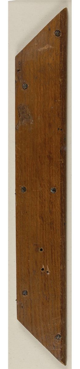 A very large section of the Titanic’s aft Grand Staircase, measuring 19 x 2.75, believed to have once been a part of a step, recovered by the Minia and turned by the ship’s carpenter William Parker into a picture frame which he crafted for the Minia’s Chief Officer, James Adams. Piece has six flathead screws around the edges and two small holes to left side. Section is beautifully archivally shadow-boxed and double-matted and framed with a portrait of the staircase and a descriptive plaque to an overall size of 23.5 x 27.5. For years following the disaster in 1912 and following the tragic death of Adams in a train/vehicle collision, this picture frame remained in the family eventually passing into the hands of Gerald T. Mullin, the grandson of James Adams. In the 1990’s the picture frame was publicly displayed as part of a special Titanic exhibition presented by the Vancouver Maritime Museum in Vancouver British Columbia, Canada. In August of 1998 the picture frame was dismantled by master woodworker William Ricks of Brandon, Manitoba. Included with this lot is a letter of provenance from noted Titanic collector, researcher, and historian Steve Santini outlining the history of the Parker/Adams picture frame, copies of photographs showing the frame in its original state as displayed at The Vancouver Maritime Museum and during the process of it being disassembled, a copy of the original 1998 artifact release document signed by Gerald T. Mullin and Steve Santini, and photocopies of a Minia crew sign-on sheet which Adams signed as well as a photo of James Adams and the cable ship Minia. Beautifully designed for the first-class passengers on board the Titanic, this preserved artifact is a magnificent reminder of the luxury afforded the wealthy on board. Oversized.