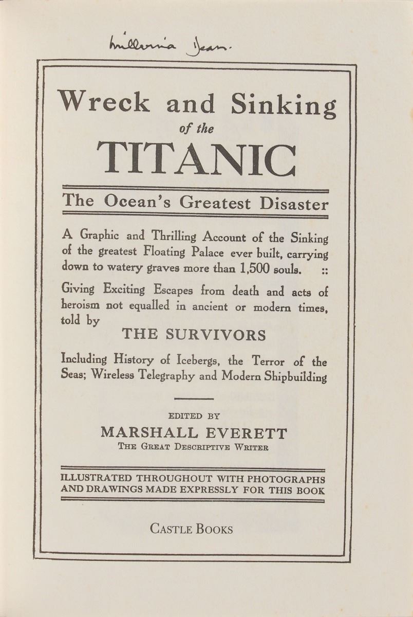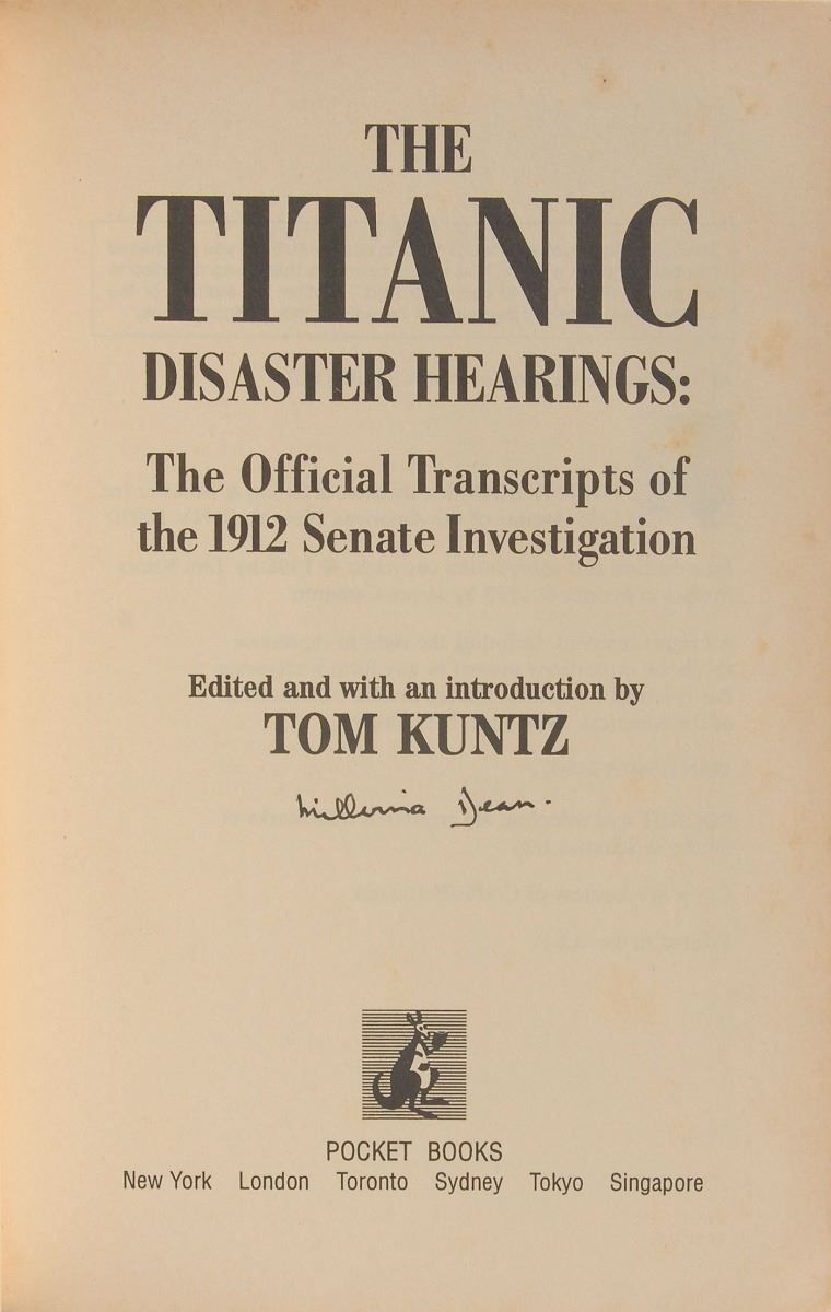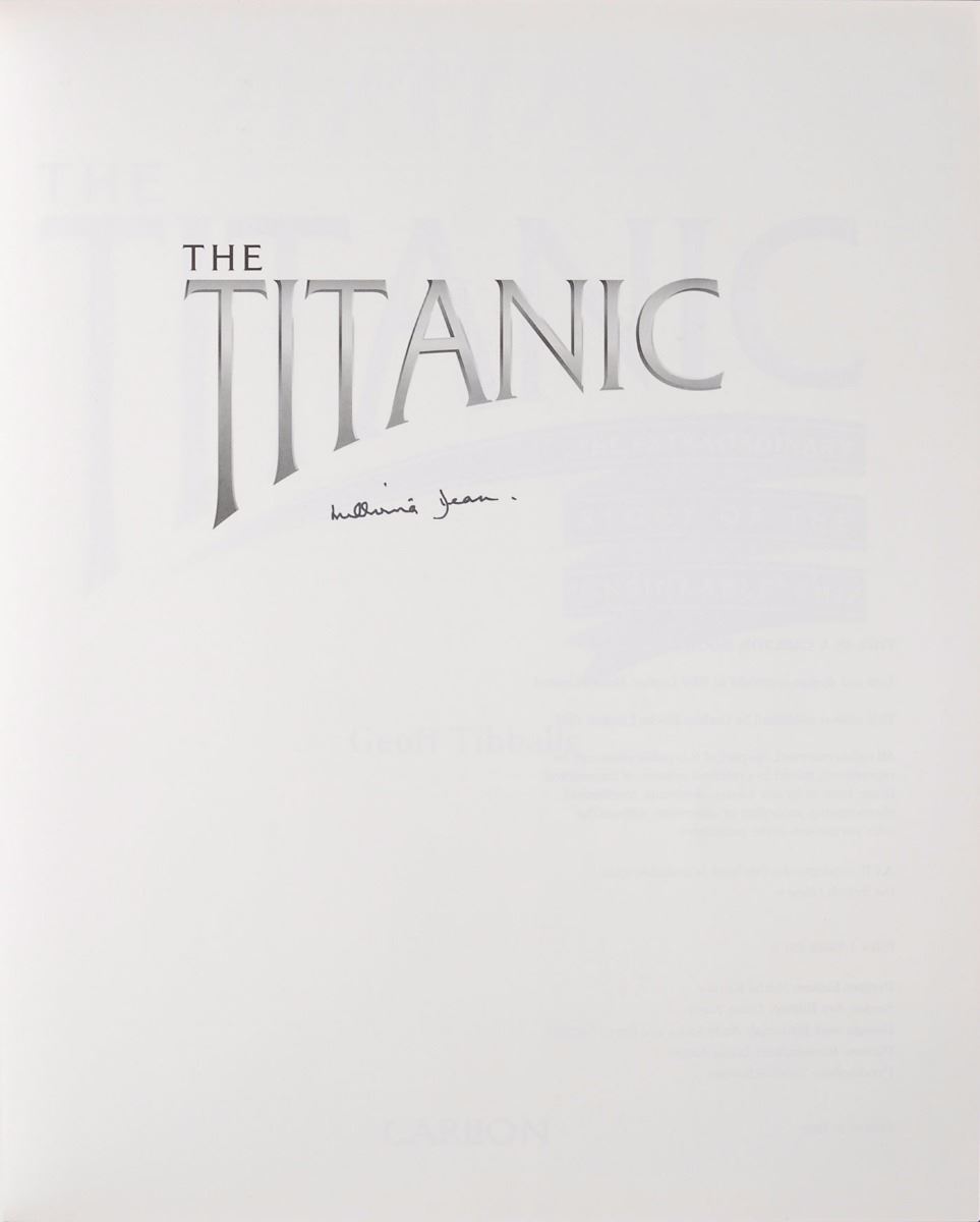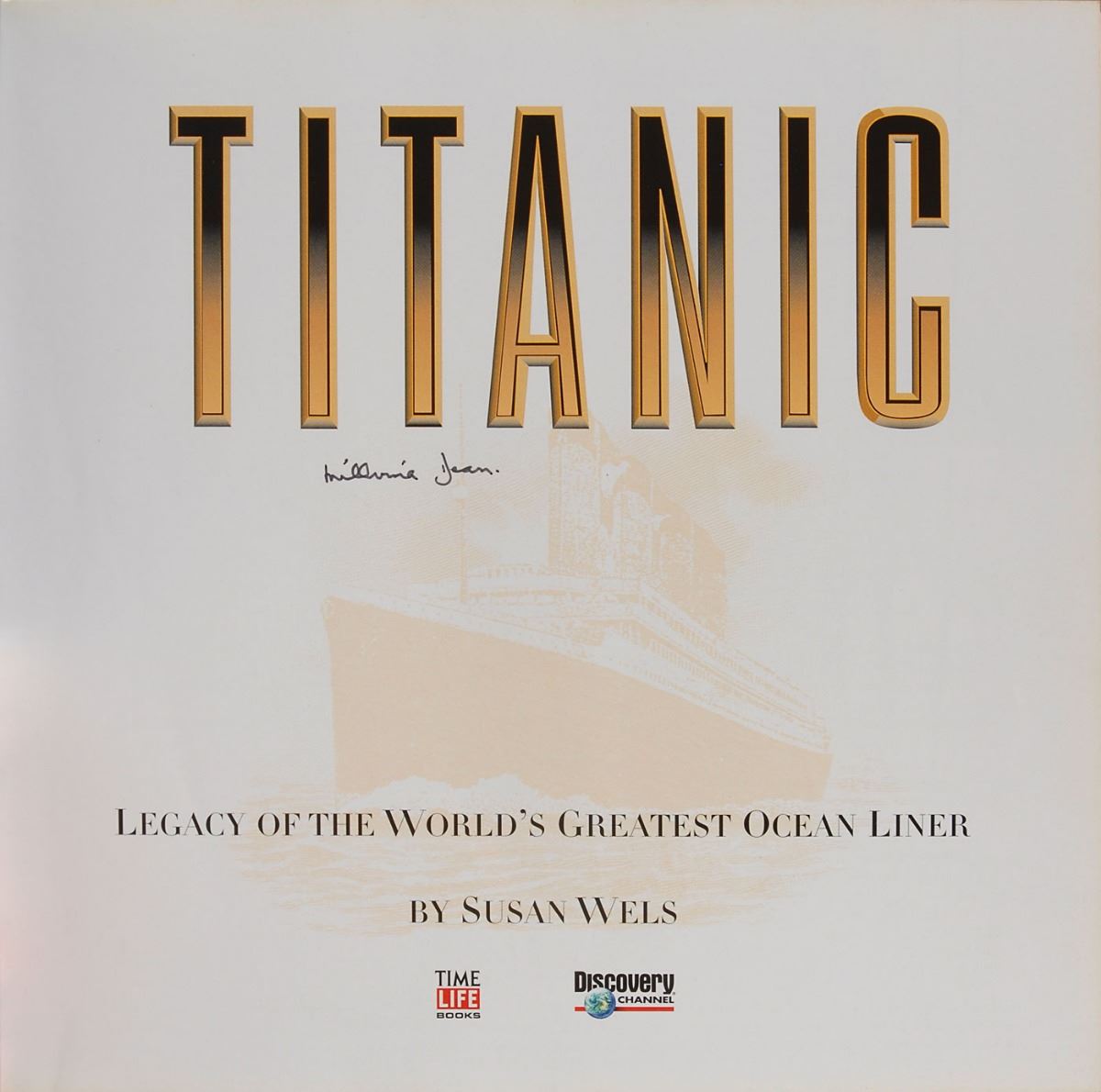 Collection of seven hardcover books, each signed inside by a figure associated with the Titanic, including: Millvina Dean (5); Millvina Dean and Robert Ballard; and Robert Ballard. In overall very good to fine condition.