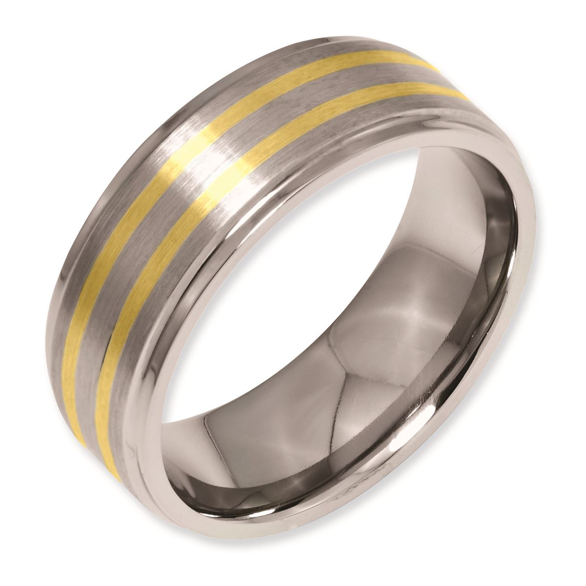 Titanium 14k Gold Inlay 8mm Satin and Polished Band