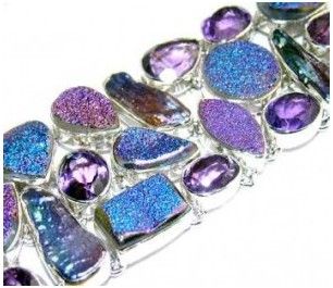 Silver & Titanium Drusy, Biwa Pearl and Amethyst Bracelet. Allow 6 to 8 weeks for delivery.