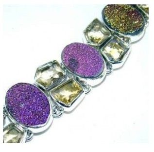 Silver & Titanium Drusy and Citrine Bracelet. Allow 6 to 8 weeks for delivery.