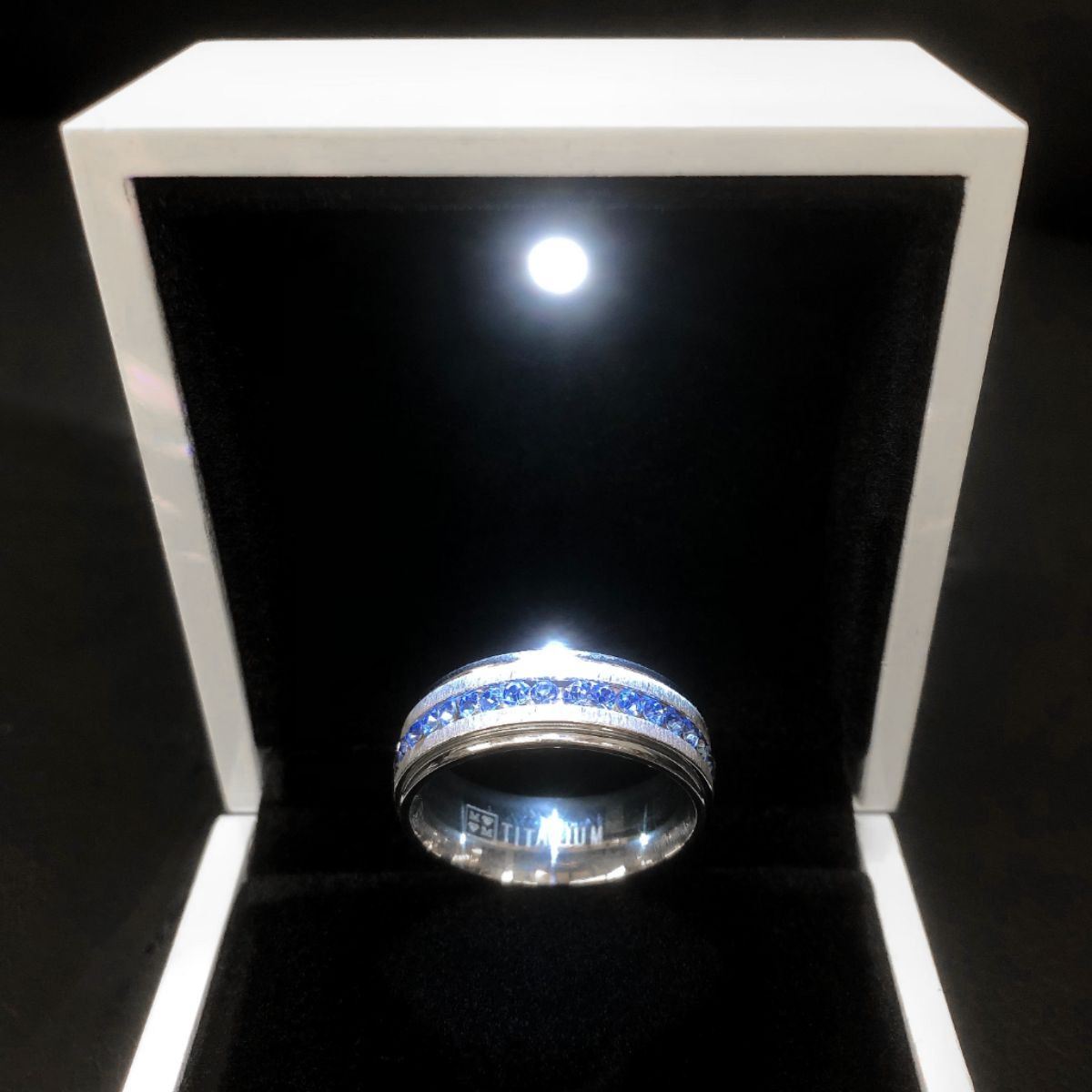 Ladies Titanium Steel Silver Brushed, Blue Engagement Ring. Brand New, Size 10. Comes In White Enameled LED Ring Box. See Photos For Further Inspection.