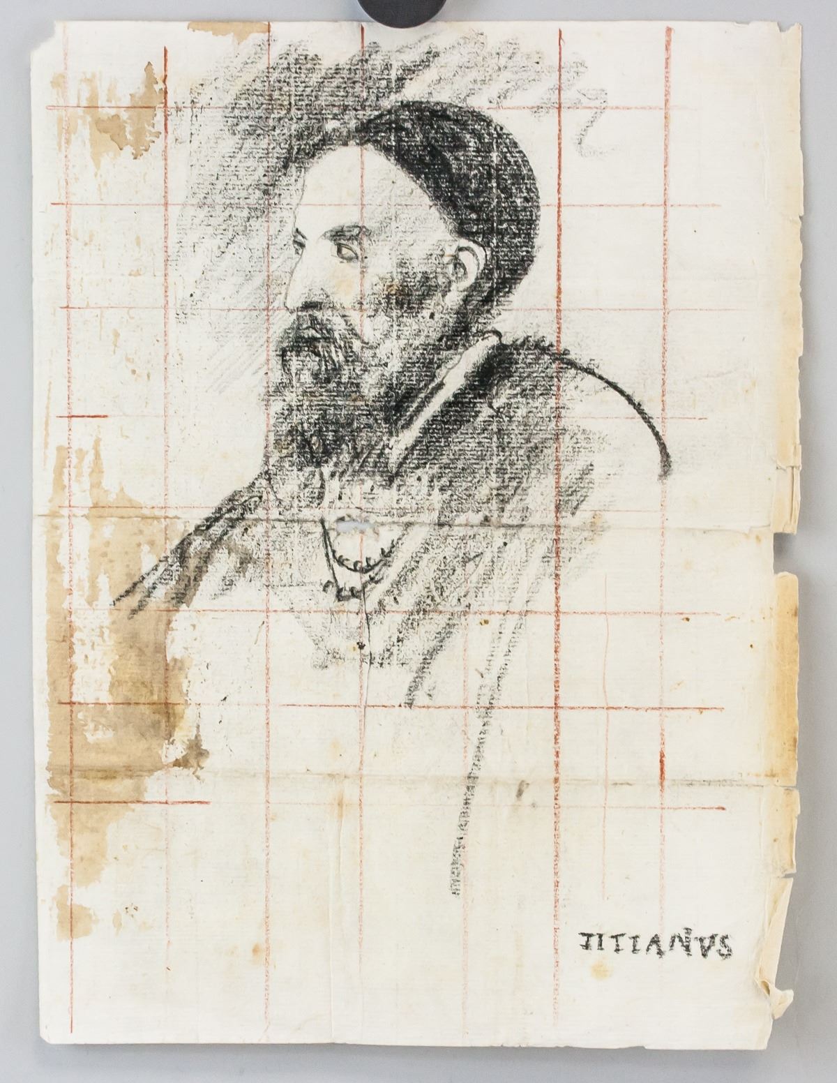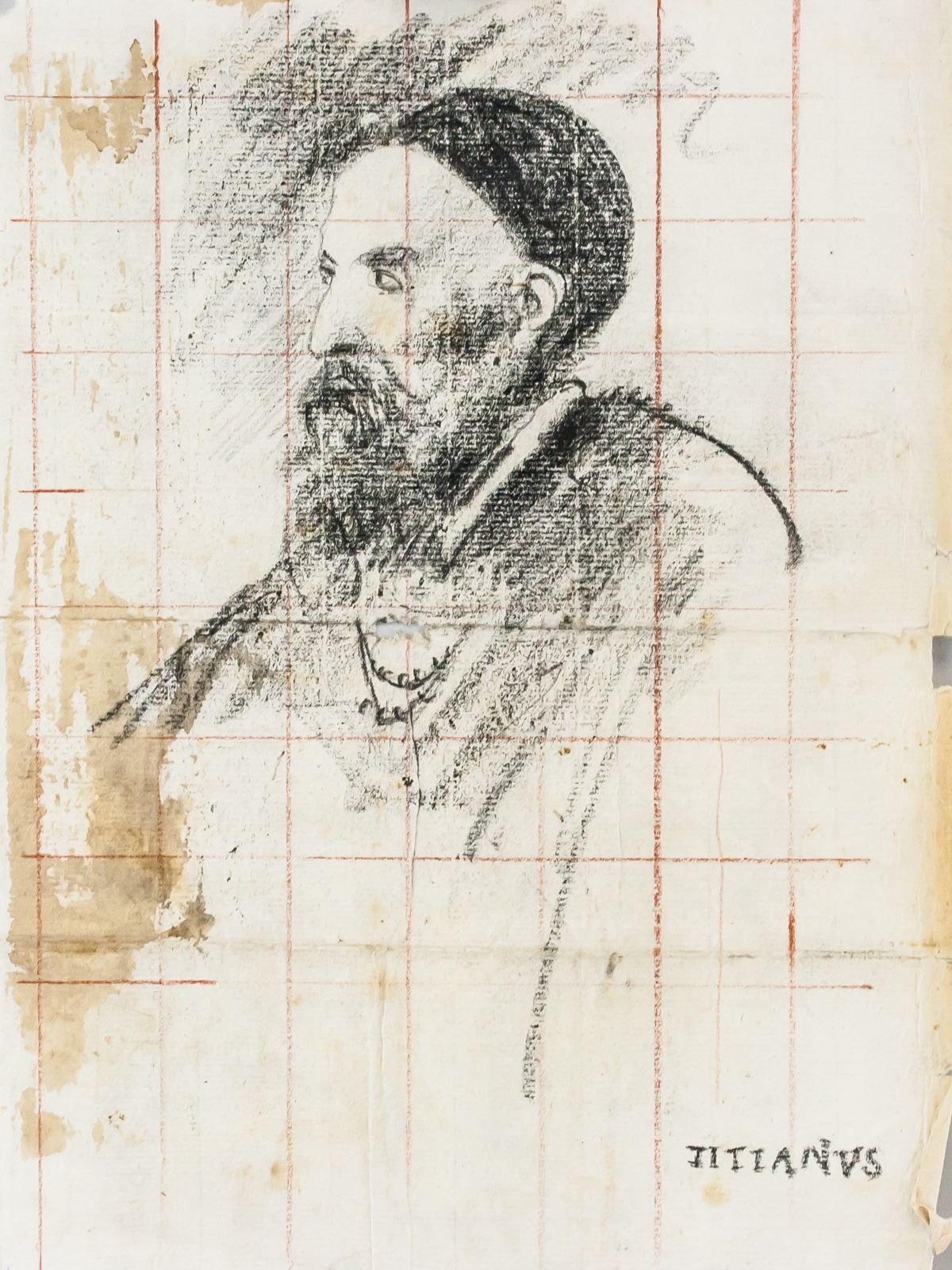 Charcoal on paper. Featuring portrait sketch of a man. Signed "TITIANVS" in the bottom right corner. Attributed to Titian (1490-1576, Italian). 26 x 19.5 cm (10.25 x 7.75 inches). Provenance: Franco Panizza, a resident of Milan, Italy, circa 1900. Gifted to his son, Albert Panizza, Milan, Italy. Thence to Canada with him in 1955. By descent to his son, Bracebridge, ON.