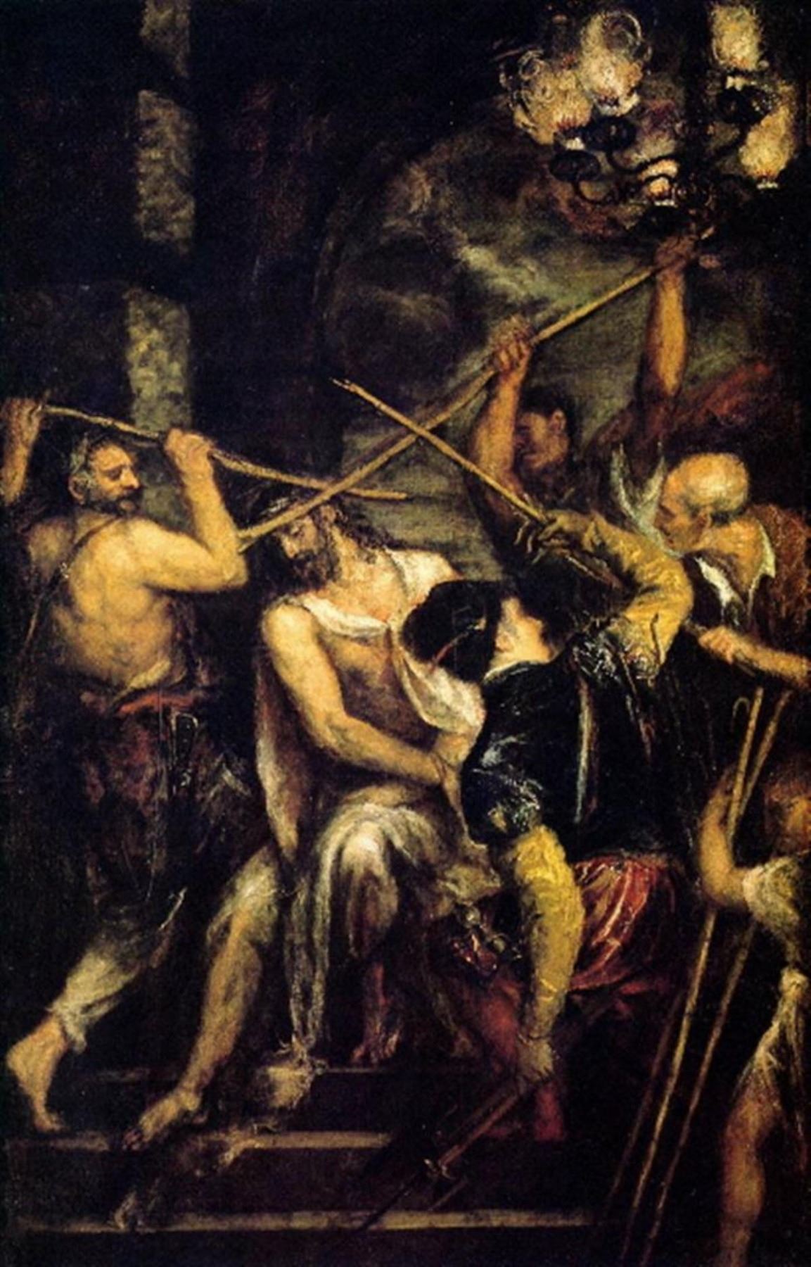 Artist: Titian - Title: The Crowning with Thorns - Medium: Fine Art Giclee on Canvas - Image Size: Approximately 32 inches x 20.5 inches - Unframed on Unstretched Canvas - Biography: Tiziano Vecelli or Vecelli (c. 1488/90 - 27 August 1576), known in English as Titian, was a Venetian painter during the Renaissance, considered the most important member of the 16th-century Venetian school. He was born in Pieve di Cadore, near Belluno. During his lifetime he was often called da Cadore, 'from Cadore', taken from his native region. Titian was one of the most versatile of Italian painters, equally adept with portraits, landscape backgrounds, and mythological and religious subjects. His painting methods, particularly in the application and use of colour, exercised a profound influence not only on painters of the late Italian Renaissance, but on future generations of Western art.
