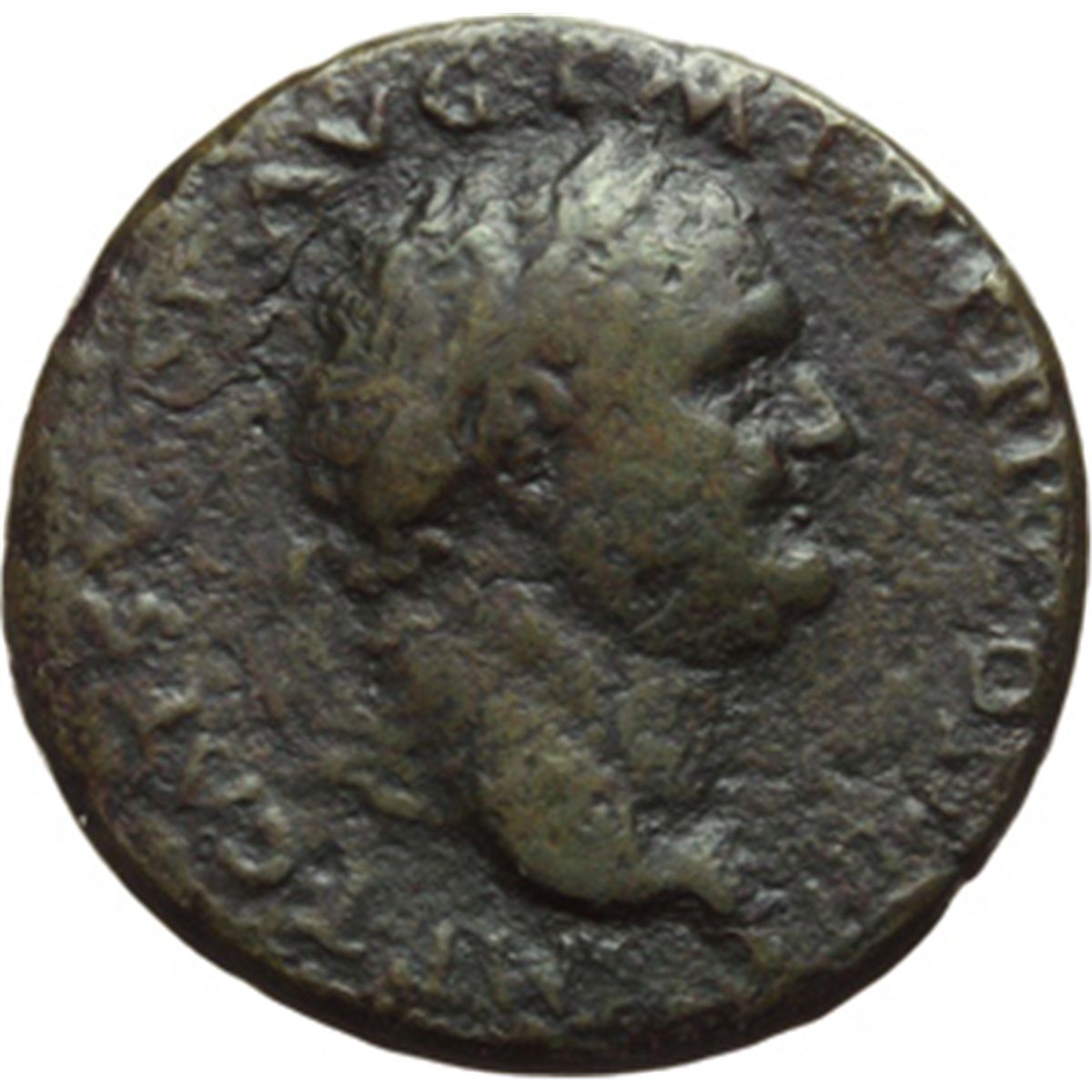 Impero Romano. Tito (79-81). Sesterzio. D/ IMP T CAES VESP AVG PM TR PPP COS VII. Testa laureata. R/ SC. Spes incede a destra tenendo un fiore nella mano sinistra. RIC 100. AE. g. 19.45 mm. 32.50 qBB.