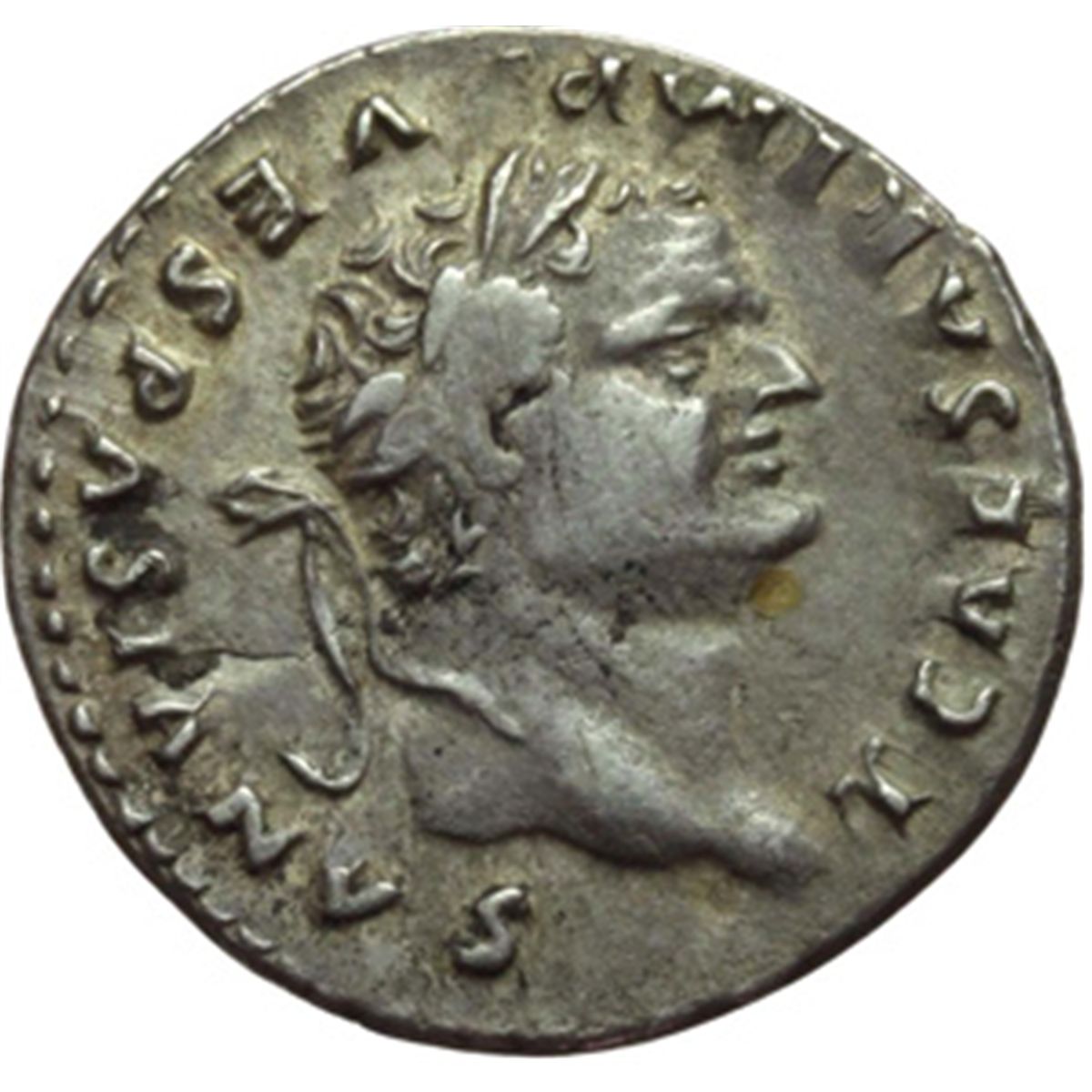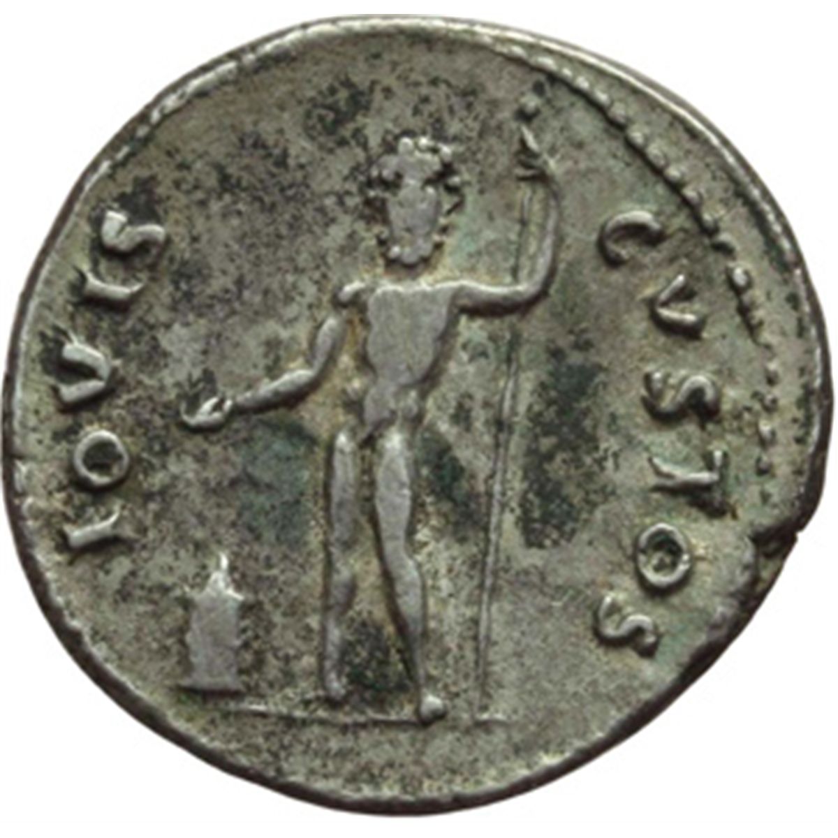 Impero Romano. Tito Cesare (69-79). Denario. D/ T CAESAR IMP VESPASIANVS. Testa laureata a destra. R/ IOVIS CVSTOS. Jupiter stante di fronte tiene scettro e patera su altare acceso. RIC (Vesp.) 176. AG. g. 3.34 mm. 19.00 R. BB/qBB.