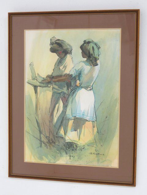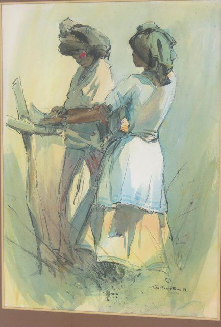 Mixed media. Framed. Signed lower right and dated 1982. Titta Fasciotti, Italian/South African (1927-1993). Approx. 28" x 20" unframed, 36" x 28 framed.
