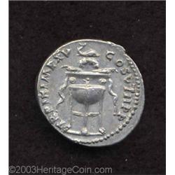 <TABLE cellSpacing=0 cellPadding=0 width="100%" bgColor=#000000 border=0><TBODY> <TR><TD width="100%"><TABLE cellSpacing=1 cellPadding=3 width="100%" border=0><TBODY><TR><TD width="100%" bgColor=#79735c><FONT face=arial color=#ffffff size=3><B>Description</B> </FONT></TD></TR><TR><TD width="100%" bgColor=#ffffff><FONT face=arial size=2><B>Titus.</B></I> A.D. 79-81. AR denarius (19 mm, 3.46 g). Rome, A.D. 80. Laureate head right / Dolphin resting on wreathed tripod. RIC 27a; BMC 78; RSC 321. Lightly toned, near XF. </FONT></TD></TR></TBODY></TABLE></TD></TR></TBODY></TABLE><BR><A name=PricesRealized></A><TABLE cellSpacing=0 cellPadding=0 width="100%" bgColor=#000000 border=0><TBODY><TR><TD width="100%"><TABLE cellSpacing=1 cellPadding=3 width="100%" border=0><TBODY><TR><TD width="100%" bgColor=#79735c><A name=PR><FONT face=arial color=#ffffff size=3><B>Previous Prices from Heritage Auctions</B> </FONT></A></TD></TR><TR><TD bgColor=#f6f6ed>No Prior Data Recorded </TD></TR><TR><TD bgColor=#ffffff><FONT face=arial size=1 ?>PLEASE NOTE: All prices realized reflect the final hammer price PLUS the buyer's premium in auctions that charge a buyer's premium. Each item has a notation at the top of the listing indicating whether that lot included a buyer's premium. Example: A item that sells with a final hammer price of $100 and a 20% buyer's premium will display with a price realized of $120. All information listed is intended to be as accurate as possible, but errors are possible. Please use this guide carefully and inform us of any inaccuracies. </FONT></TD></TR></TBODY></TABLE></TD></TR></TBODY></TABLE><BR><TABLE cellSpacing=0 cellPadding=0 width="100%" bgColor=#000000 border=0><TBODY><TR><TD width="100%"><TABLE cellSpacing=1 cellPadding=3 width="100%" border=0><TBODY><TR><TD width="100%" bgColor=#79735c colSpan=6><FONT face=arial color=#ffffff size=3><B>Price Guide*</B> </FONT></TD></TR><TR bgColor=#f6f6ed><TD align=middle><B>Grade</B> </TD><TD align=middle><B>Coin World<BR>(Trends)</B> </TD><TD align=middle><B>Numismedia<BR>Retail</B> </TD><TD align=middle><B>Numismedia<BR>Wholesale</B> </TD><TD align=middle><B>Coin<BR>Universe</B> </TD><TD align=middle><B>Heritage<BR>Value Index</B> </TD></TR><TR bgColor=#ffffff><TD colSpan=6><FONT size=1>*All information listed is intended to be as accurate as possible, but errors are possible. No item may be returned or refused based on this information which is provided as a service to our customers. You should contact each pricing source directly to determine the accuracy of this information. </FONT></TD></TR></TBODY></TABLE></TD></TR></TBODY></TABLE><BR><TABLE cellSpacing=0 cellPadding=0 width="100%" bgColor=#000000 border=0><TBODY><TR><TD width="100%"><TABLE cellSpacing=1 cellPadding=3 width="100%" border=0><TBODY><TR><TD width="100%" bgColor=#79735c><FONT face=arial color=#ffffff size=3><B>Population Guide</B> </FONT></TD></TR><TR bgColor=#ffffff> Important notice: Heritage usually auctions material at the rate of 200-250 lots per hour. On some occasions eBay Live bid software or the Internet may not be able to keep up with the pace of the auction. We recommend placing a realistic absentee bid now as insurance to avoid disappointment. Occasionally the auctioneer may eliminate or reject an eBay Live bid, and the auctioneer may also reopen a lot after the close of the eBay live bidding (usually because we missed an audience bid), and may reject your bid even if it shows you as the winning bidder. By bidding via eBay Live, you agree that Heritage may award the lot to another bidder at its sole discretion under the circumstances described above or any other reasonable circumstances. Also please note that all Heritage lots purchased through eBay Live carry a 20% Buyer's Premium. Please make sure you read the Terms and Conditions before you bid.</TD></TR></TBODY></TABLE></TD></TR></TBODY></TABLE>
