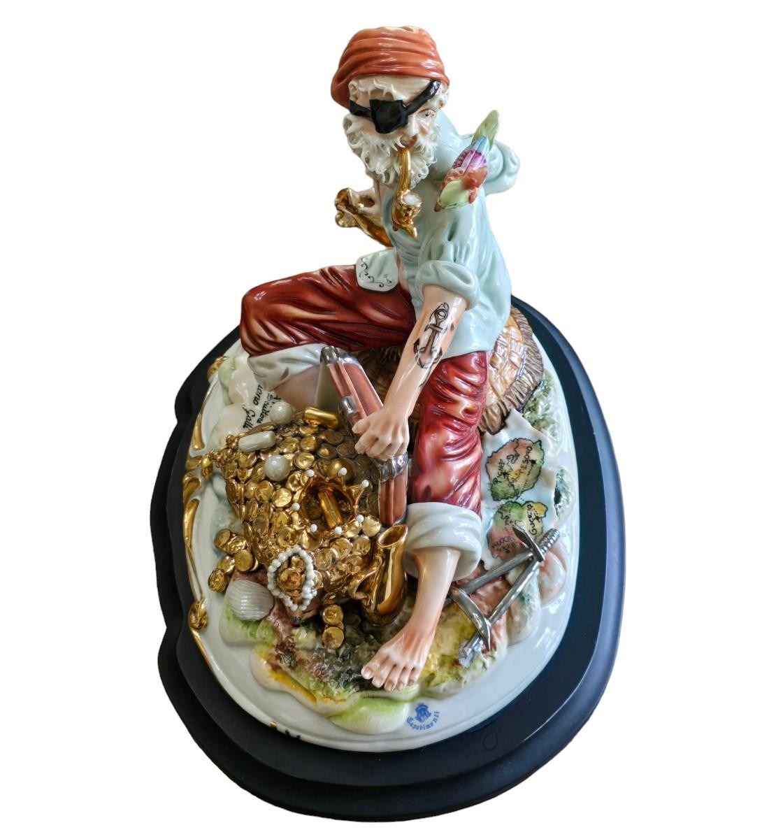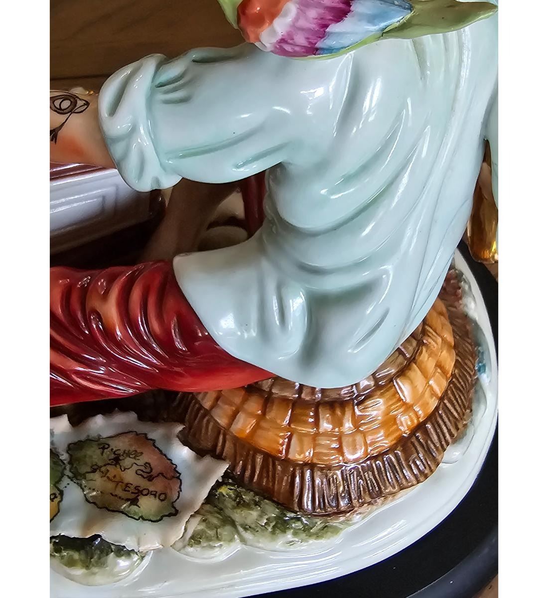 Tiziano Galli 1908-1986 Porcelain Figure Pirate With Parrot & Treasure Chest Signed.