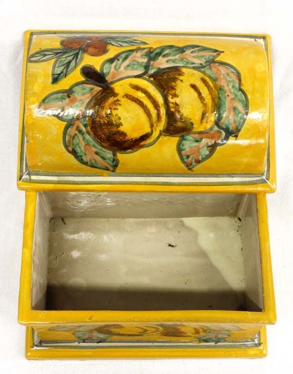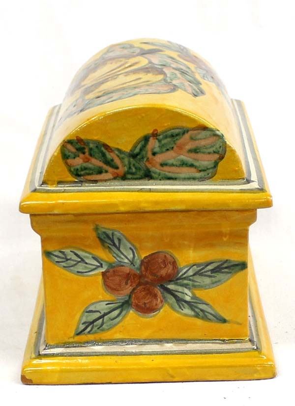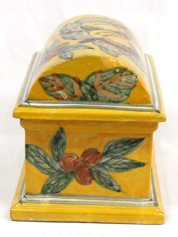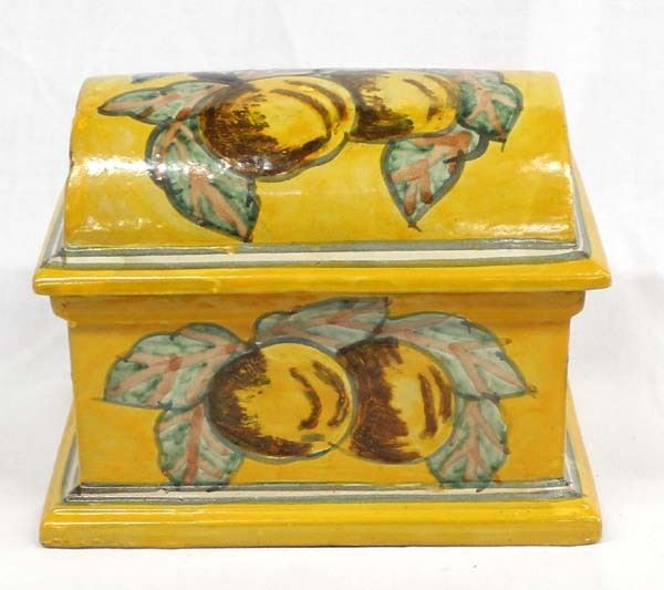 Tlaquepaque Lidded Pottery Box, measures 6'' x 9'' x 7'', bright vibrant colors