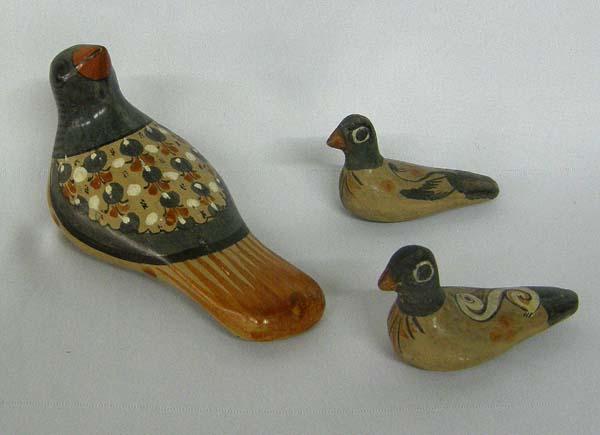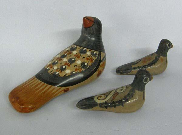 Tlaquepaque Mother Bird And Baby Birds, largest bird measures approx. 3.5'' x 6.25''. SHI $25.