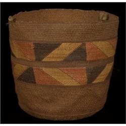 Tlingit Polychrome Spruce Root Berry Basket 8" D. 7 3/4" H. Fair Condition