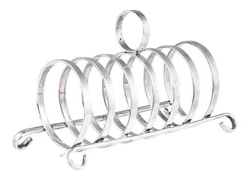 Silver-plated nickel-silver. For six toasts. Marked: W. SIZE F., Württenbergische Metallwarren Fabrik, Geislingen, circa 1910. Length: 17.5 cm
