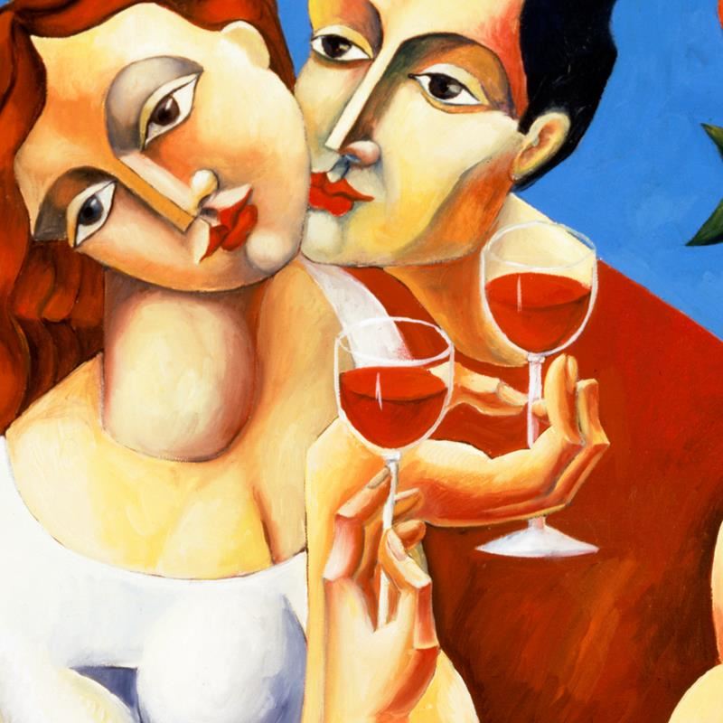 "Toast To Love" is a limited edition serigraph on canvas by Yuroz. The piece is hand signed by the artist, numbered, and accompanied by a certificate of authenticity. Measures approximately 40" x 30" (image).