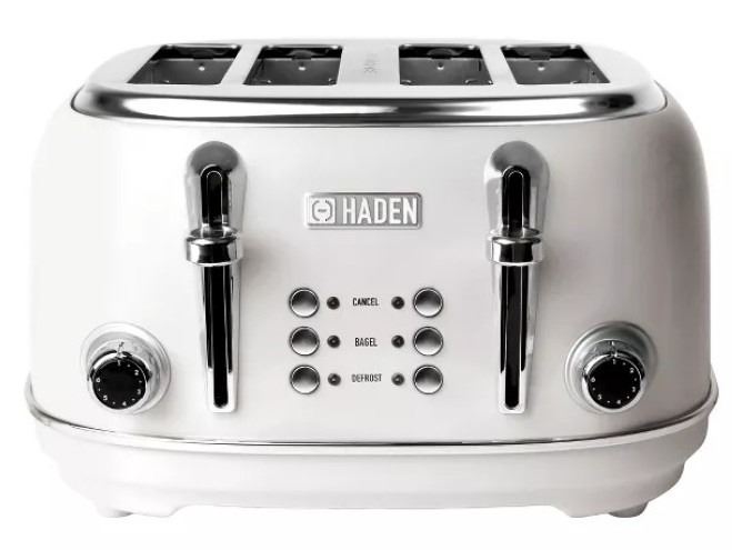 Haden Heritage, 4 Slice Wide Slot Stainless Steel Retro Toaster, White, New Condition